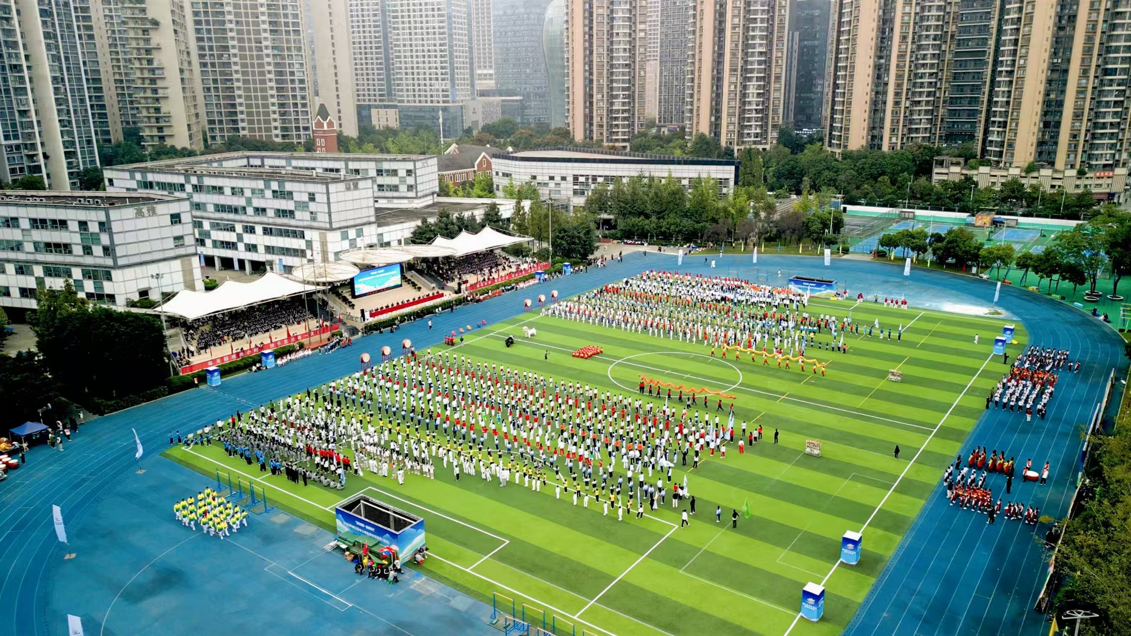 10月30日下午,2025年锦江区中小学生综合运动会在成都市七中育才学校汇源校区盛大开幕。全区2100余名师生齐聚一堂,共同展示十年体育改革成果。