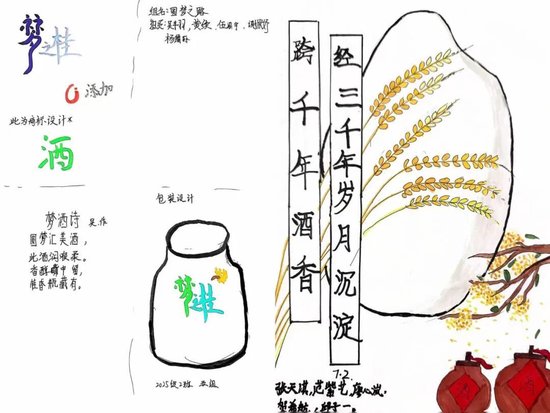 制作好的米酒最终成为商品流入“市场”。同学们化身品牌主理人,运用所学知识思考如何“吸引眼球”——设计视觉包装、撰写产品文案,把一瓶瓶米酒打造成有故事、有温度的“文化产品”。
