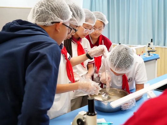 ·生物实验室里,学生们观察酵母菌的奇妙发酵过程,控制温度与时间,在一次次失败中调整方案,见证淀粉到糖的甜蜜蜕变。