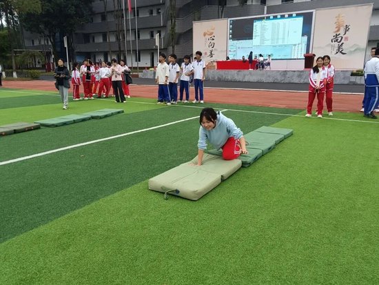 教师队伍闪亮登场,平时严肃的班主任化身体育健将,科任老师变身游戏“黑马”。同学们纷纷为老师呐喊助威,赛场秒变大型“师生互夸”现场。这一刻,没有讲台与课桌的距离,只有欢笑与掌声的共鸣!