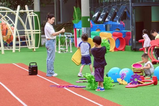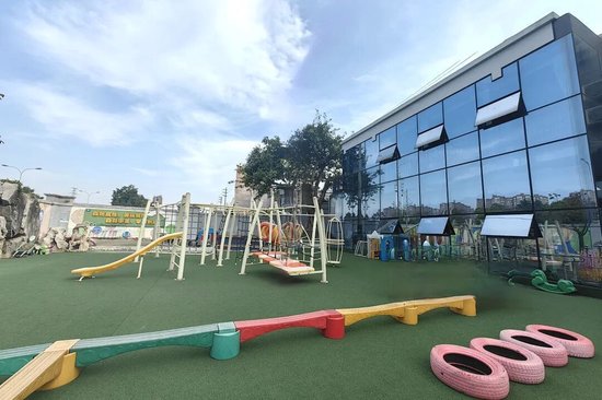 幼儿园有约1500m²的户外场地,满足幼儿各项户外游戏需求。幼儿园与协同外语学校校园一体化,共享200余亩场地及丰富多样的功能馆,保证孩子足够的户内外空间。