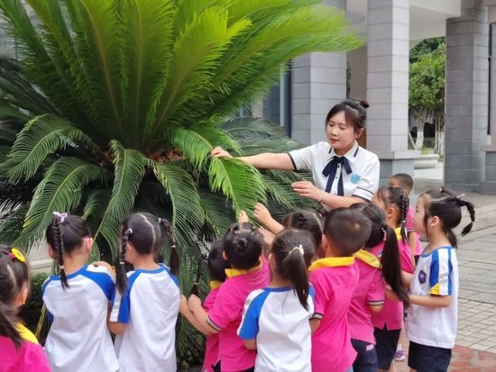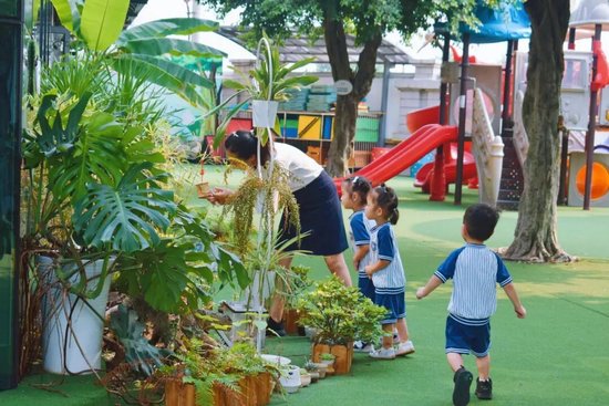 幼儿园全面整合协同外语学校自然硬件资源,合理、科学开发自然、野趣、探究育人点位,开发“没有屋顶的教室”自然野趣探究课程,让幼儿漫步花园式“城堡”学校,多元学习、多元发展。