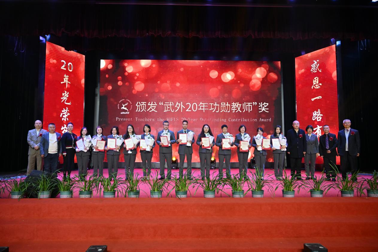 隆重的“武外20年功勋教师“颁奖环节,将庆典的氛围推向了一个感人至深的高潮。