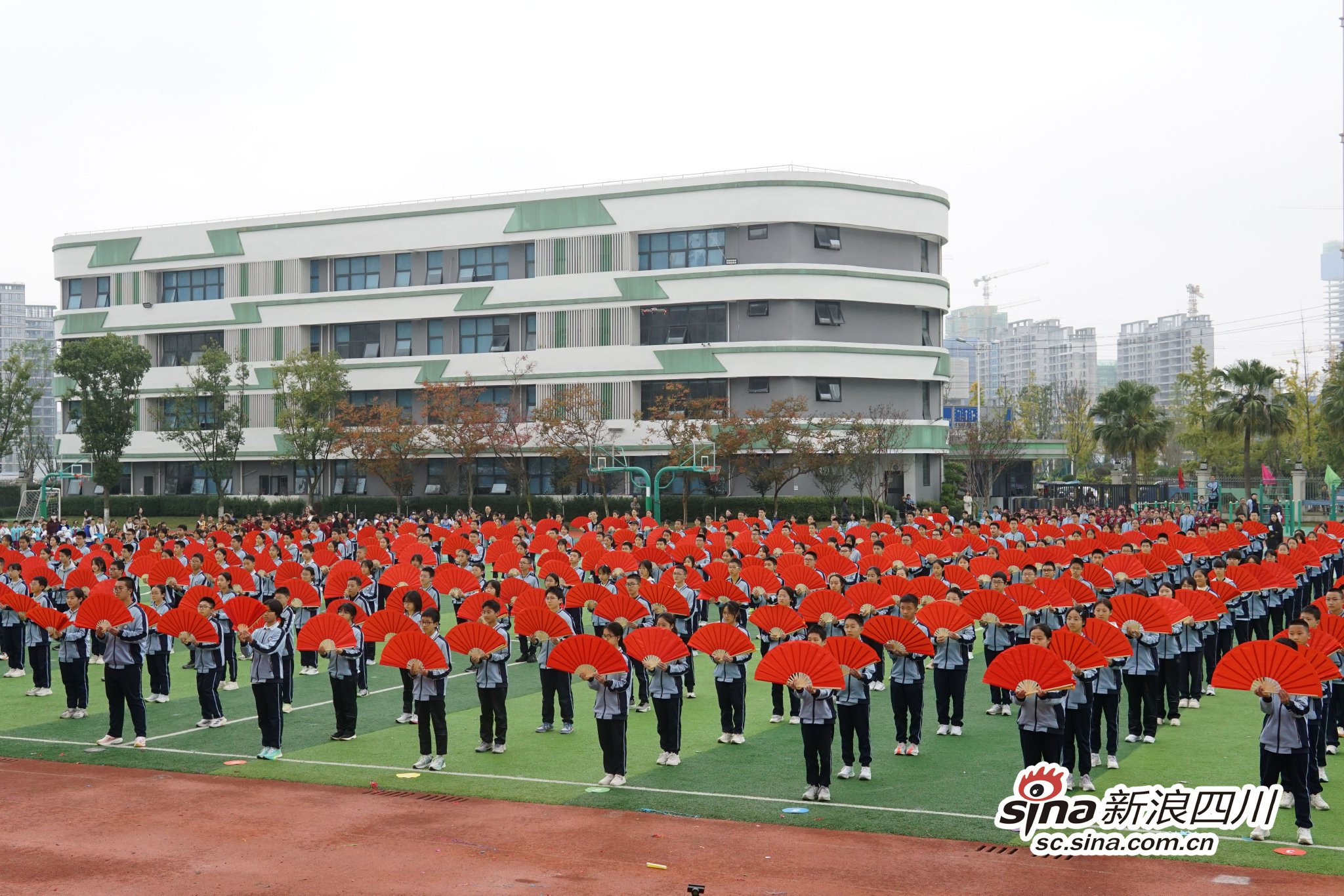 开幕式后,新世纪光华学校学子还带来了丰富多彩的大型团体操表演。学校舞蹈队带来民族舞《大美中华》,通过优雅的舞姿展现各民族特色和文化融合之美;小学部三、四、五、六年级学子带来《童趣山河》,同学们手持彩色花环或铃铛,通过活泼的跑位和简单的队形变换(如花朵、太阳),展现孩童眼中的多彩中华与纯真快乐;八年级学生的《天地龙鳞》雄浑壮阔,近千人的扇舞、彩带表演展现青少年的力与美……