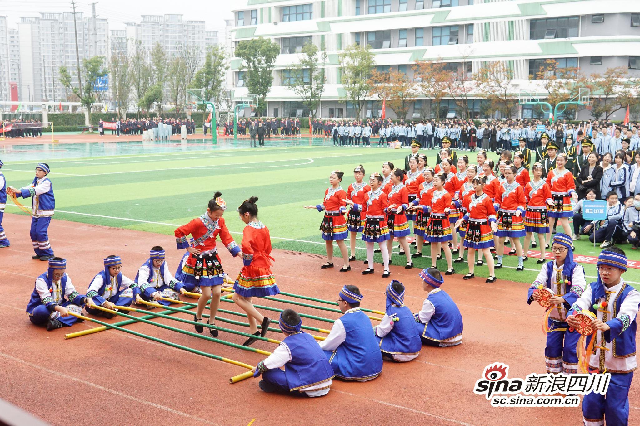 初一年级以“非遗瑰宝·匠心中华”为主题,竹竿舞、舞剑、打鼓、川剧……同学们一展才艺,将非遗传承进行到底!