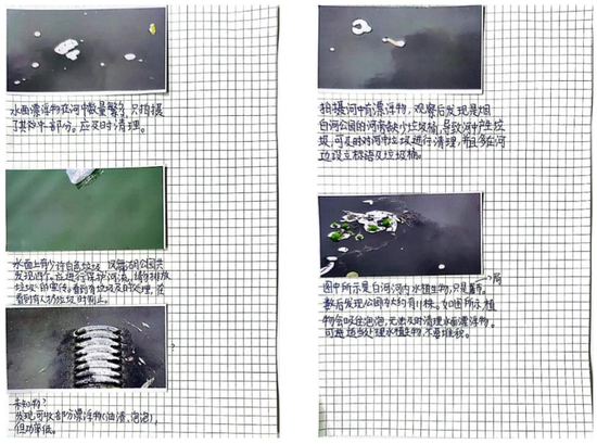 自2021年起,附小二至五年级的孩子们持续开展了白河污染现状调查及治理研究。他们每月巡河记录污染情况,运用试纸与检测溶液监测不同河段水质,问卷调查、实地采访周边居民了解白河生态情况。融合多学科知识,以科学思维推动实践,学生建立环保理念,形成系列成果,强化守护母亲河的责任担当。