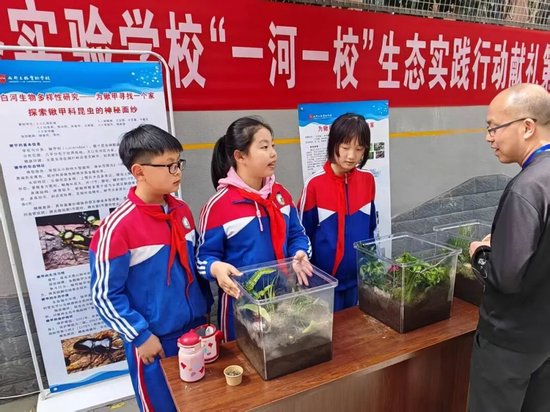 关注在国家推进生态文明建设、践行“双碳”与“两山”理念的战略背景下,基础教育正将生态蓝图转化为实践行动。以“蓉城智碳”为本土抓手,成都立格实验学校附属小学自2021年起,立足校园、辐射社会,开展了“保护母亲河”白河污染调查与治理实践、白河生态艺术创作行动、锹甲家园搭建、废纸板再生等活动,让国家生态纲领与本土低碳理念,化作学生手中的标本、脚下的巡河路,为生态文明教育落地写下生动注脚。