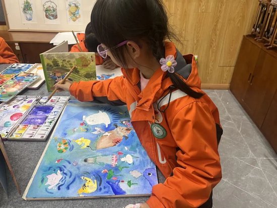“蓉城智碳·保护母亲河”主题下, 2-4年级学生开展艺术赋能低碳行动。以白河生态保护为核心,将生态知识、低碳理念与美育融合,引导学生通过绘画呈现白河自然人文价值,思考水质污染、垃圾堆积等生态问题。联动家庭参与实地调研,让学生在艺术表达中探索低碳解决方案,推动家校社协同,以艺术为载体传播智碳理念,助力理念融入日常生活。