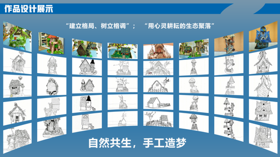 附小科学教师团队以“自然共生,手工造梦”为核心理念打造了《立格耘心·生态聚落》装置。选用树枝、苔藓等自然材料,融入灯光、发电组件,打造风格各异的微型建筑群落。借鉴传统工艺增强材料耐用性,通过动态光影模拟昼夜交替,以可持续能源原理注解生态主题,传递自然保护与手工匠心,唤醒公众生态保护意识。