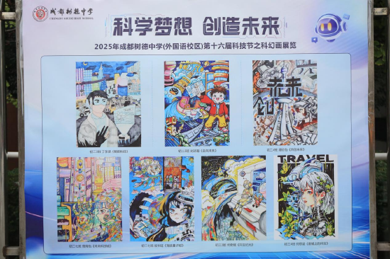 活动还展出了高中学生的科研论文与初中同学的科创绘画,内容涵盖人文、化学、人工智能等多个领域,呈现出树德学子跨学科、多层次、系统化的科学探索路径。从充满未来感的科幻画作到趣味性的实验操作,再到基于实地调研与数据分析的学术论文,完整展现了学校“激发兴趣—培养能力—孵化成果”的教育生态。