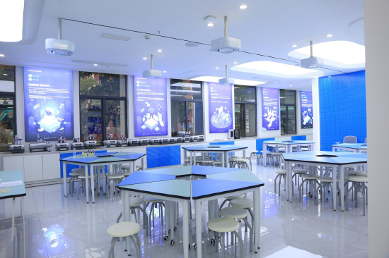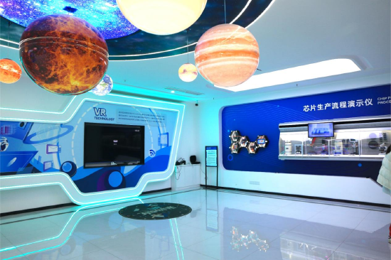 为了更好地开展科创教育,学校打造了专业的科技馆。在这里,学生可以了解芯片的诞生、进行VR互动,了解科创领域的相关知识。物理老师包芯介绍道:“我在讲授万有引力时,就会带同学们来科技馆,同学们可以上手感受同一物体在地球、火星、金星等不同行星的重量差异,从而将抽象的理论转化为可触可感的直观体验。”