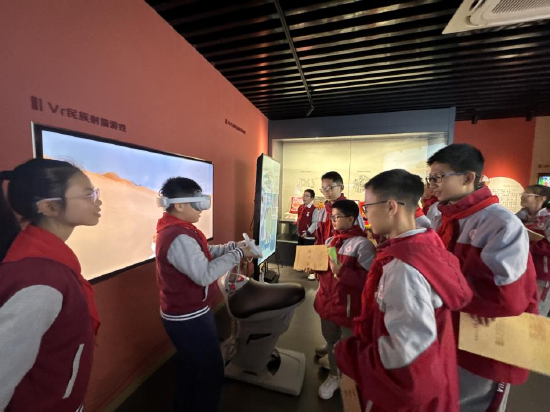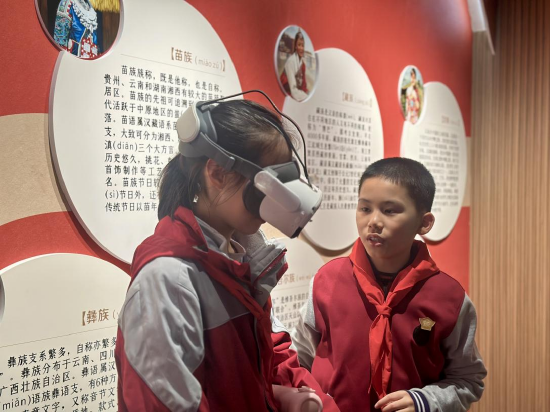 在回民小学精心打造的民族博物馆内,两校学生混合编组,共同体验数字技术带来的文化盛宴。通过AR技术“穿戴”各民族节日服饰,借助VR设备“参与”传统节庆活动,扫描二维码聆听生动的民俗讲解,这些创新的数字体验让古老的民族文化在学生们眼前“活”了起来。