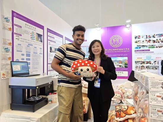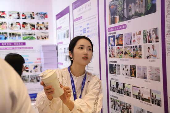 教学成果展厅中,集团“菌蕈王国探秘”项目吸引了众多与会者驻足。项目融合科学探究与文创设计,互动性强,趣味盎然,成为展区热点,充分体现了课程建设的创新力与吸引力。