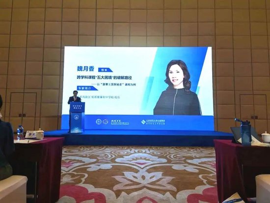 在科学教育大会分论坛上,魏月香总校长以跨学科课程为主题,作了专题分享。她系统阐述了集团在科学教育方面的前沿探索与深度思考,展现了“银初智慧”在推动国家科学教育发展中的积极作为。