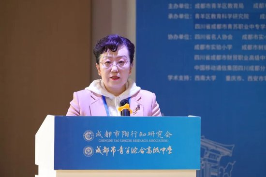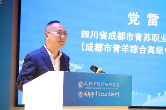 四川省成都市青苏职业中专学校(成都市青羊区综合高级中学)校长党雷致辞 ,学校在探索与进步的过程中,离不开陶行知教育思想的滋养;学校将以此次年会为契机,广交朋友,相互学习,为学生提供多样化的发展选择,搭建更加广阔的成长成才渠道。