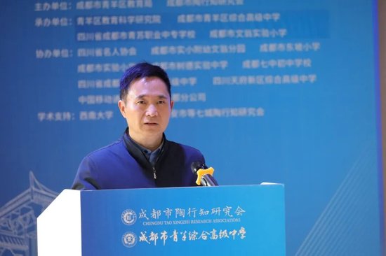 成都市青羊区委教育工委委员、区政府总督学、区教育局党组成员、区教育考试中心主张勇指出,青羊区各学段的实践探索,既是对陶行知教育思想的传承弘扬,也是对新时代教育改革要求的积极回应;诚挚希望各位领导和专家不吝赐教,多为青羊教育传经送宝,指点迷津。