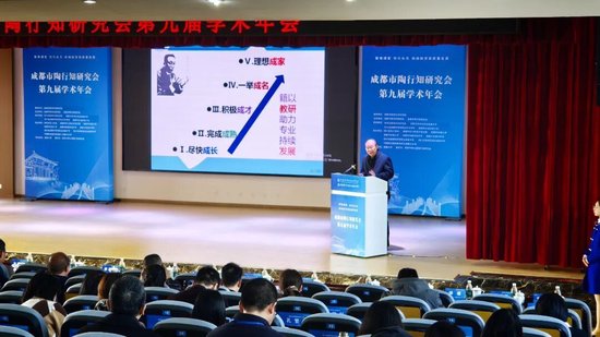 四川省职教学会副会长黄宗良表示,学会将积极支持成陶会各项工作,携手各方力量,共同为构建高质量教育体系贡献四川智慧和力量;希望各位同仁以本次年会为契机,深耕科研实践,勇于改革创新的先进经验,让陶行知先生的教育思想成为现实,在新时代四川教育沃土上绽放新的希望。