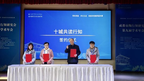 为凝聚更多教育力量,共促区域教育协同发展,学术年会上进行了“成渝行知教育协作”、“十城共读行知”和“成都市综合高中教研培共同体”三项具有深远战略意义的签约仪式。