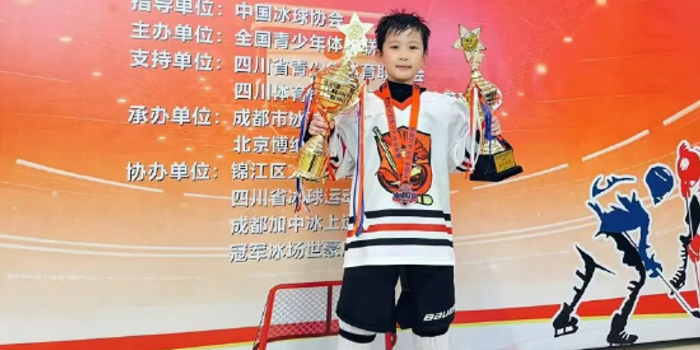 陈昱明同学从四岁开启冰上追梦之旅,四岁半正式学习冰球,七岁尝试轮滑球新领域。每周4-5次的坚持训练,每次1.5-2小时的全心投入,让热爱在日复一日中愈发闪亮。