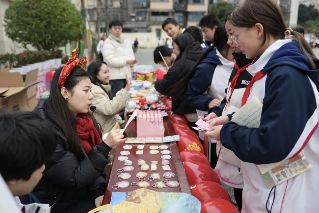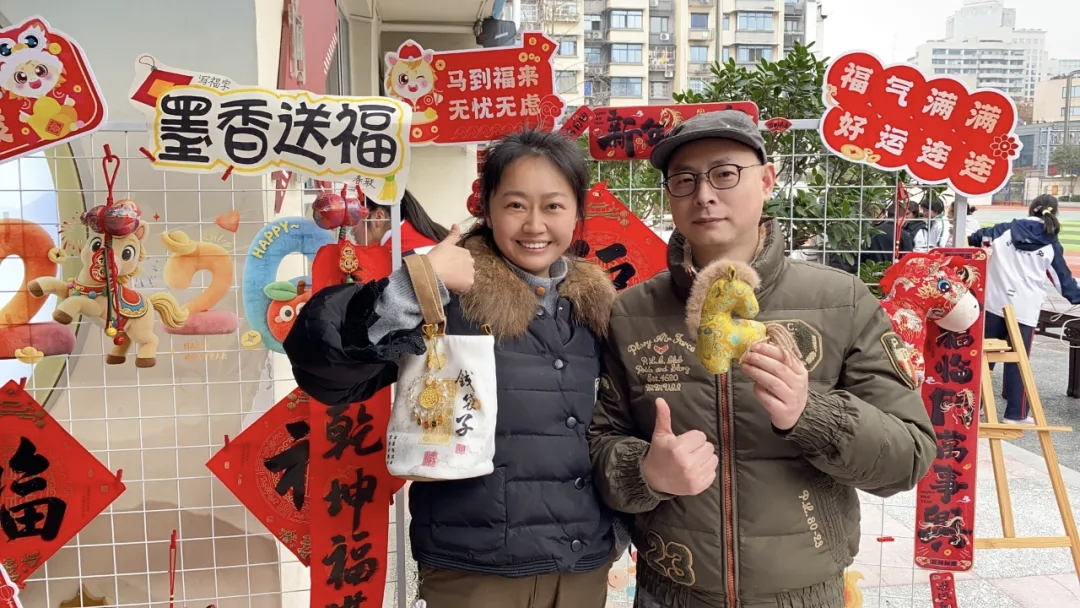 在文创区内,学生们可用游园积分兑换各类创意文创产品,更有老师们亲手书写的“福”字帖赠送,传递浓浓年意与温情。