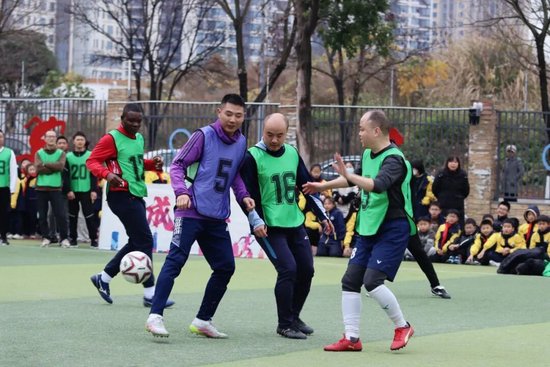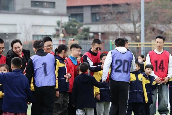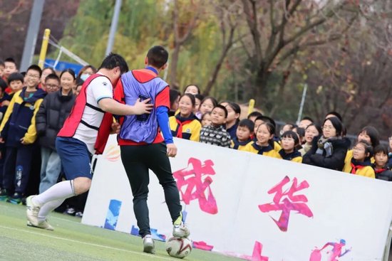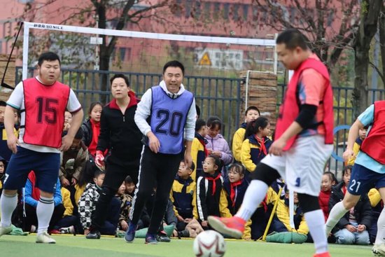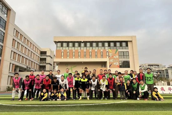 校队队员与足球教练带来的特色表演,将足球运动的灵动与技巧展现得淋漓尽致,赢得全场阵阵掌声。亲子入场仪式环节,家长与孩子手牵手并肩走入赛场,定格下成长陪伴的温馨瞬间。本次活动特别设置家长友谊赛环节,家长们将以球会友、切磋技艺,为孩子们树立拼搏榜样。现场孩子们热情高涨,纷纷为参赛的爸爸们和同场选手呐喊助威,“加油”声此起彼伏,点燃了整个赛场。