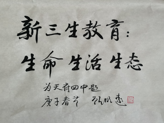 当代中国教育泰斗顾明远先生为天府四中题写“新三生教育:生命、生活、生态”,高度评价天府四中先进的办学理念。