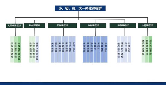 为了学生的全面、自主、个性和可持续发展,学校系统构建“三层五类卓越人才”课程体系,大力推进“5+3+4”课程改革,有利于放缓课程坡度、放慢课程进度、拓展课程宽度、加深课程深度。