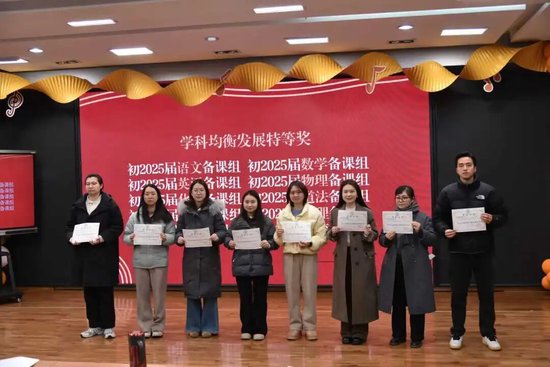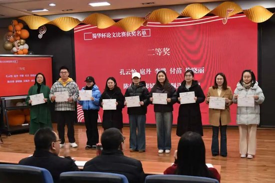 在荣誉表彰环节,学校集中展示了本学年在教学竞赛、教育科研、团队建设等方面取得的突破性成果。校领导依次为老师们颁发了“新课标解读奖”、“蜀华杯论文比赛奖”,以及“优秀教研组”、“优秀班主任”、“优秀班集体”等多个奖项。