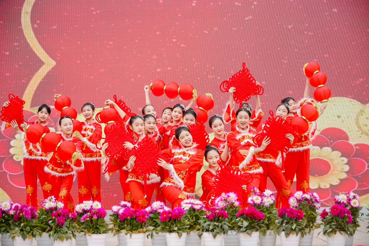 在盐道街中学(南区),由学校舞蹈队带来的《中华全家福》,以喜庆昂扬的旋律为底色,融合传统民族舞的浓郁韵味与现代舞蹈的灵动编排,将阖家团圆、国泰民安的美好寓意与百廿盐中育人为本的办学初心深度结合,礼赞盛世中华,致敬母校百廿风华。