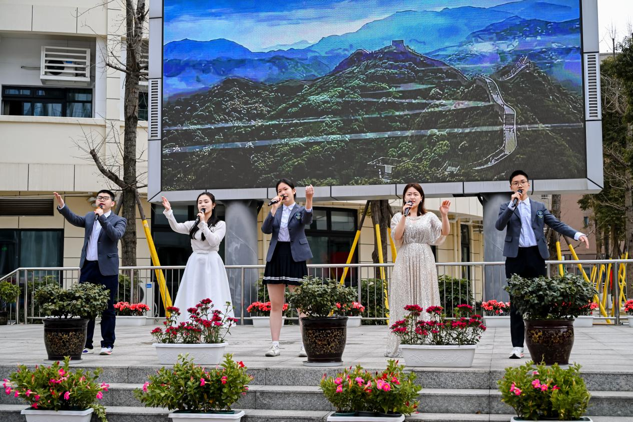 由师生共同演绎的歌曲《铭记》,旋律里藏着对先辈的追思,真挚歌声中凝着对使命的坚守,深情吟唱间融着对母校的挚爱;歌声穿越岁月长河,铭记长征路上的栉风沐雨,铭记百廿盐中的砥砺奋进,铭记新时代青年的责任担当。