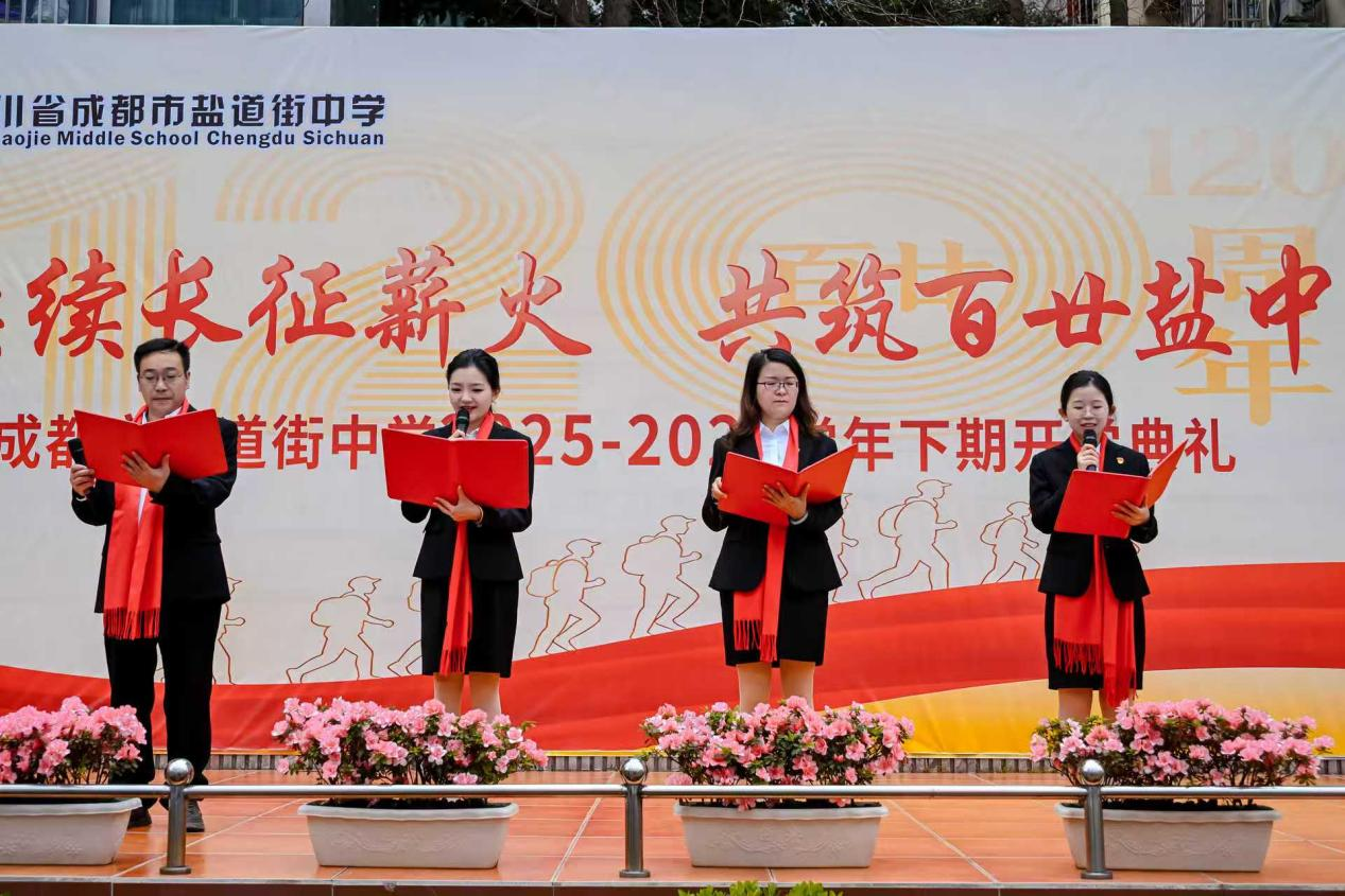 关注值此学校喜迎120周年校庆、长征胜利90周年之际,成都市盐道街中学全体师生于2026年3月2日齐聚校园,举行“赓续长征薪火 共筑百廿盐中”2025-2026学年下期开学典礼。