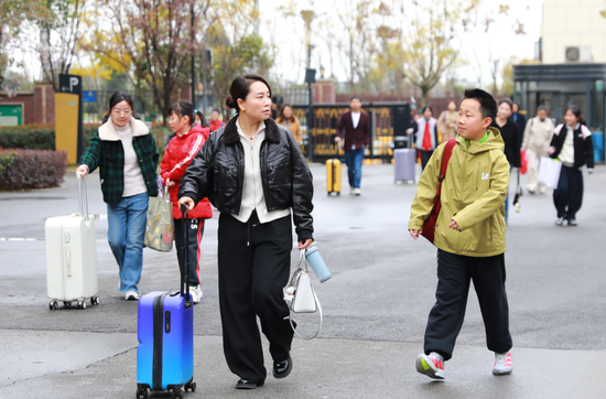 清晨的校门口,熟悉的问候声此起彼伏。“老师好!”“好久不见!”——简单的问候里藏着深深的思念,脸上也洋溢着返校的喜悦。学子们拖着行李箱,背着书包,昂首阔步地走进校园,小小的身影走得稳稳当当,这份自主自立的模样,正是成长最好的注脚。
