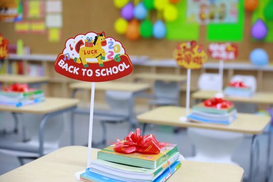 为了给孩子们送上别样的开学惊喜,老师们精心准备了“花式”开学礼物,将美好祝福藏进每一份心意里。有的班级挂满红彤彤的气球,寓意新学期“鸿运当头”;有的班级为孩子们准备了棒棒糖,寄托“新学期,你最棒”的鼓励;还有的班级定制了精致的“开学红包”,里面装着写满马年祝福的书签,“策马扬鞭,未来可期”“龙马精神,学业有成”,每一句话都承载着师长的殷切期盼,让孩子们在惊喜中感受到校园的温暖。
