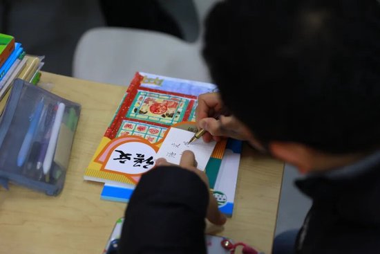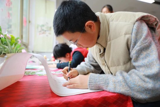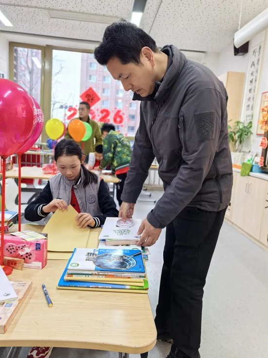 包好书皮后,家长和孩子们一同在书皮上写下姓名与班级,一笔一画间,藏着对新学期的期许。一张张整齐的书皮,包裹的不仅是崭新的课本,更是孩子们对新学期的珍视,是亲子间的温情与陪伴。