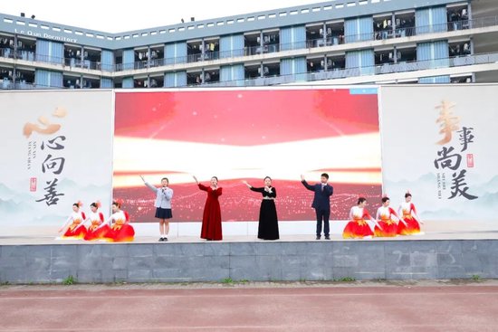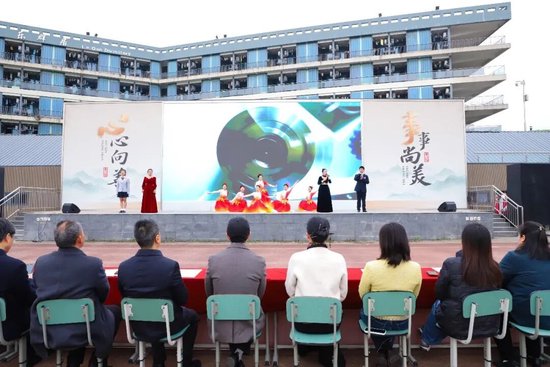 匠心筑梦,青春同行。学校师生共同带来表演唱《匠心筑梦》,以嘹亮的歌声诠释精益求精的匠心追求,以饱满的姿态传递筑梦前行的青春力量,将“以匠心铸技能,以青春筑梦想”的理念深深植入每一位青苏人心间,也将典礼的氛围推向高潮,让匠心之美、青春之彩在校园绽放。