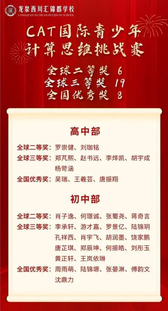 在2025年赛事中,西川汇锦都学校学子表现亮眼,斩获全球二等奖6项、三等奖19项、全国优秀奖8项,用实力诠释了扎实的思维功底。
