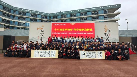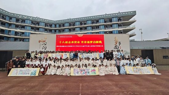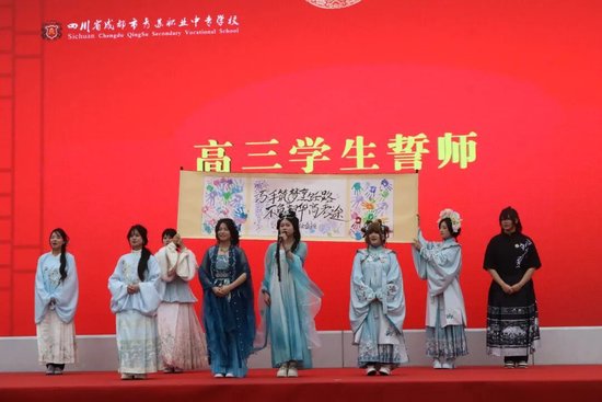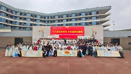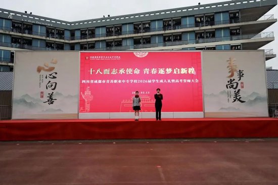 关注十八而志,责有攸归;十八而志,大任始承。2026年3月13日,四川省成都市青苏职业中专学校以“十八而志承使命 青春逐梦启新程”为主题,隆重举行2026届学生成人礼暨高考誓师大会。成都市青羊区文家街道盐井社区党委副书记刘建军,康庄社区党委副书记李阳莅临活动现场,全校教职工、高三学生及家长齐聚一堂,传统汉式礼仪为青春加冕,以铮铮誓言为高考壮行,共同见证这场青春成长盛典。