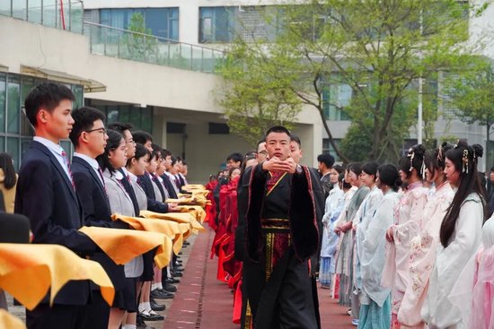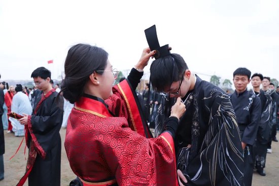 汉风加冕成人礼 青苏职中2026届学子以传统礼仪赴高考之约