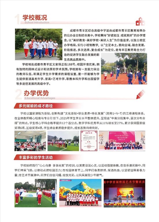 成都市青羊综合高级中学(以下简称“青羊综合高中”)2026年公办普高招生工作正式开启。作为公办全日制综合高中,青羊综合高中面向成都市5+2区域学籍或户籍、参加成都市中考的应届毕业生开放报考,计划招生550人(以成都市教育局批复为准),助力每一位学子多元发展、圆梦高考。