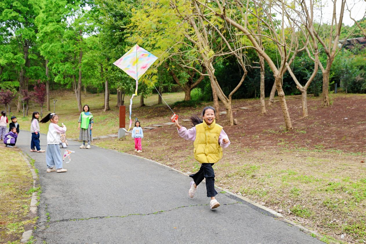 午后徒步,细雨如丝点染田埂。孩子们踩着湿润的泥土,穿过青翠的秧苗与初绽的野花,零星雨滴在肩头蒸发成凉意。抵达白鹭湾畔时,云层恰巧散开,阳光为湿地镀上一层柔金。孩子们攥紧亲手制作的风筝线轴,在白鹭湾的小路上奔跑起来。风筝虽未能高飞,却如彩蝶般在低空翩跹;线绳在掌心牵扯,笑声随奔跑溅落满地。没有“成功”与否的标尺,只有奔跑本身带来的酣畅——特需儿童与普通孩子同样追逐着风筝的轨迹,同样为线端的每一次颤动雀跃,同样在奔跑中忘却了所有标签。