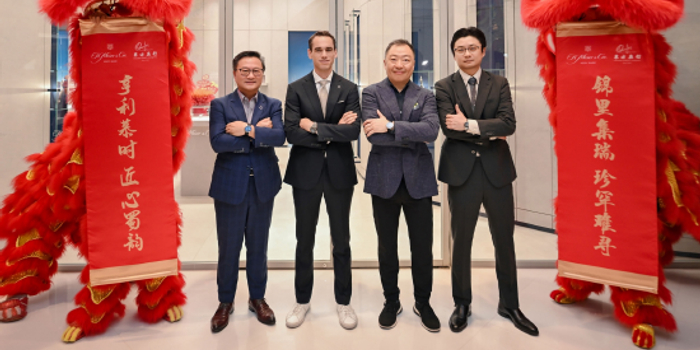 亨利慕时首席执行官爱德华·梅朗(Edouard MEYLAN)携手亨利慕时中国Frost NIU,东方表行集团董事总经理Dennis YEUNG,东方表行首席运营官Kenneth CHAN,共同见证品牌在中国市场发展的又一璀璨里程碑。