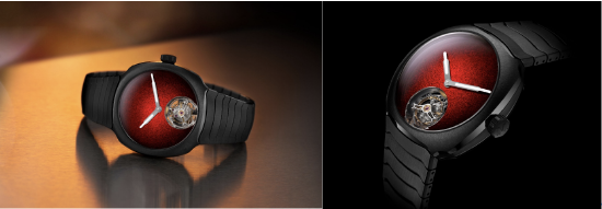 疾速者系列陀飞轮陶瓷款概念腕表(Streamliner Tourbillon Concept Ceramic)以碳灰色陶瓷枕形表壳,搭配一体式表链,抛光与缎面润饰交相辉映,红色烟熏大明火珐琅表盘与无标识设计相得益彰,搭载双游丝一分钟飞行陀飞轮,彰显前瞻美学与精湛工艺。