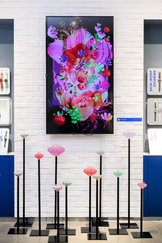 作品于 4 月 24 日至 5 月 5 日在斯沃琪成都 IFS 店铺呈现,4 月 24 日,艺术家罗比亲临现场,与公众展开交流。