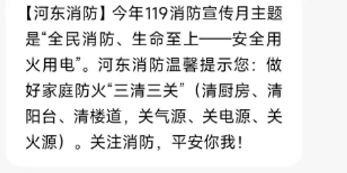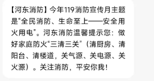 关注为全力做好“119”消防宣传月活动,扩大消防宣传效应与社会影响力,连日来,遂宁市河东新区消防救援大队利用多方宣传阵地,发动辖区重点单位、学校充分利用悬挂横幅、LED显示屏播放消防宣传标语及视频,同时充分发挥短信、微信等渠道传播速度快、覆盖面广的优势,为119消防宣传工作添彩助阵,掀起全民学习知识热潮。