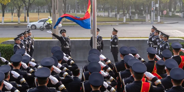 升旗宣誓活动结束后,市局举行第六个中国人民警察节荣誉授予仪式。仪式由市公安局党委副书记、常务副局长蒋亚峰主持。市局在家局领导、2025年度光荣退休民警代表、首授警衔民警代表、受到表彰奖励的集体和个人代表、市局各部门双正职负责同志、民辅警代表以及市局机关年轻民警代表参加活动。