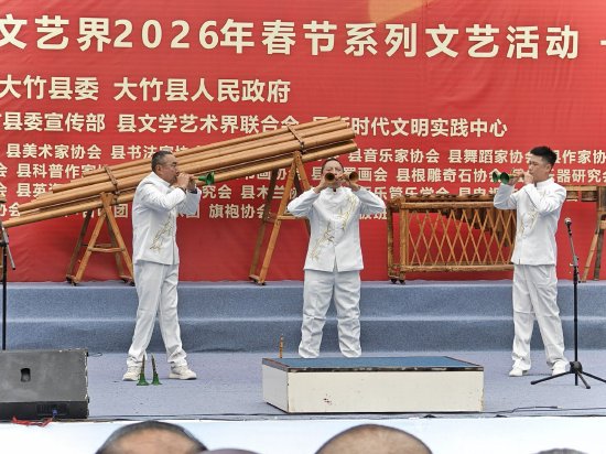 关注2 月 18 日,大年初二下午 14:30,达州市大竹县 “新禧竹乡・艺马当先” 春节系列文化惠民活动之竹乐器及器乐展演在煌歌广场热闹开演。来自县竹乐器研究会、清平乐管乐学会、民乐学会的 100 余名文艺工作者同台献艺,以竹为乐、以曲传情,为竹城市民奉上了一场独具地方特色的视听盛宴,让大家在悠扬竹韵中欢度新春佳节。