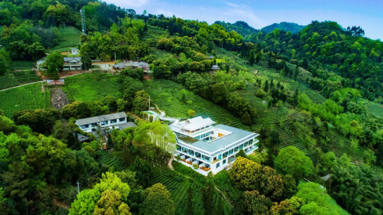 “竹上花楸”野奢艺术民宿隐于竹海茶园之间,让游客不出店门即可尽览茶山风光并体验采茶制茶、茶道表演、瓷胎竹编等特色非遗活动。