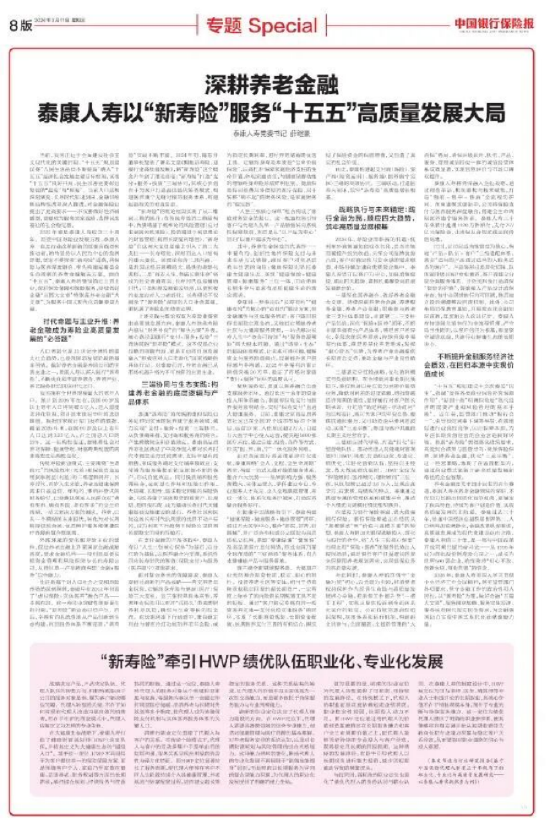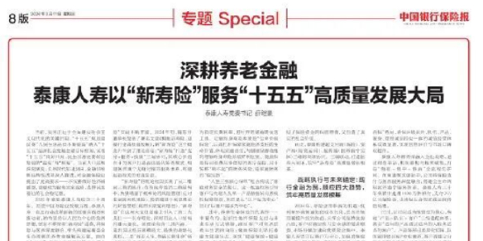 关注2026年是“十五五”开局之年,泰康人寿党委根据做好金融“五篇大文章”的要求,结合公司在长寿时代推进“新寿险”的创新实践,开展理论学习。日前,《中国银行保险报》刊登泰康人寿党委书记薛继豪署名文章《深耕养老金融 ,泰康人寿以“新寿险”服务“十五五”高质量发展大局》,全文转载如下。