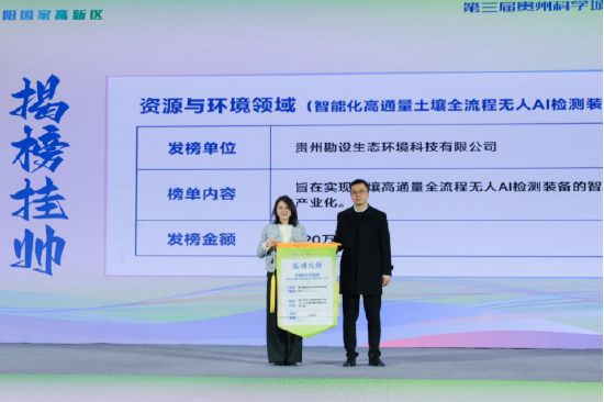 资源与环境领域,贵州勘设生态环境科技有限公司推出“智能化高通量土壤全流程无人AI检测装备产业化”项目,发榜金额420万元,将实现土壤检测装备的智能化与产业化。揭榜方为中南大学贵州研究院,该院将依托自身在智能无人集群系统协同控制等领域的研究基础,推动土壤检测技术向高效化、无人化升级。