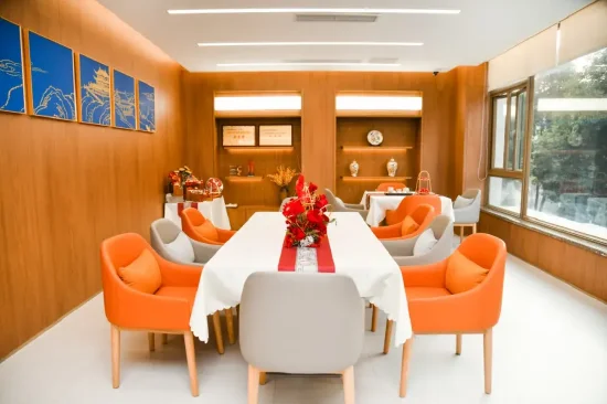 作为兴业银行在川布局的又一精品3.0版本网点,全新启幕的峨眉山支行将现代金融理念与在地文化图腾巧妙融合:网点正门入口一侧,“我爱CIB”与峨眉灵猴元素相结合,大厅楼梯转角处及室内空间均引入峨眉金顶轮廓仿刻工艺,以“兴业蓝+峨眉金”的流动之韵展现峨眉金顶的风光旖旎。步入近300㎡的焕新厅堂,一幅“科技有速度,服务有温度”的画卷徐徐展开:空间科学规划,以入门动线先后划分为智能服务区、现金业务区、财富产品销售专区、公众教育区及“兴公益”惠民驿站等区域,全网点配备多套最新智能柜台及移动展业终端,实现90%非现金业务“指尖触达、一键办结”,业务办理全面提速;惠民驿站内,适老设施、轮椅、急救药箱、充电设施、饮水服务一应俱全,让银行网点的社会服务功能向外进一步延伸温情触达,厅堂整体装潢以自然光搭配暖木色调,点缀绿植与马年新春红火喜庆造景,为客户来宾营造出如家般的亲和氛围。